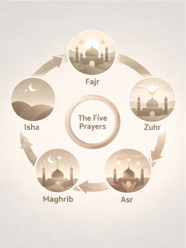 Plans live between prayers and move as prayer times change—because your day already has structure.